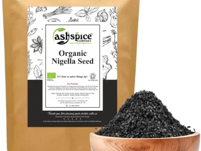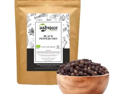 The product is organic Whole Black Peppercorns by Ash Spice Company.